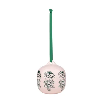 Vihkiruusu Dekorationsanhänger von Marimekko ist eine sammelwürdige Keramikdekoration mit glänzender hellgelber Glasur und dem zeitlosen Muster Vihkiruusu von Maija Isola. Die Kugel trägt auf der Unterseite einen Stempel mit Marimekko und dem Produktionsjahr, was sie perfekt als Erinnerungsstück macht oder zum jährlichen Sammeln. Das Design verleiht dem Zuhause eine poetische Note und passt ebenso gut ins Fenster wie auf eine dekorative Schale. Wird in Marimekkos Geschenkbox geliefert und ist ein geschätztes Geschenk. Das Keramikmaterial verleiht Gewicht und Haltbarkeit für eine lang anhaltende Nutzung.